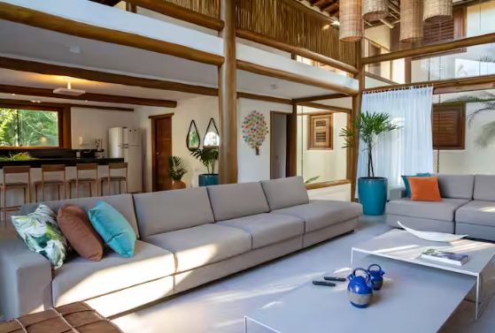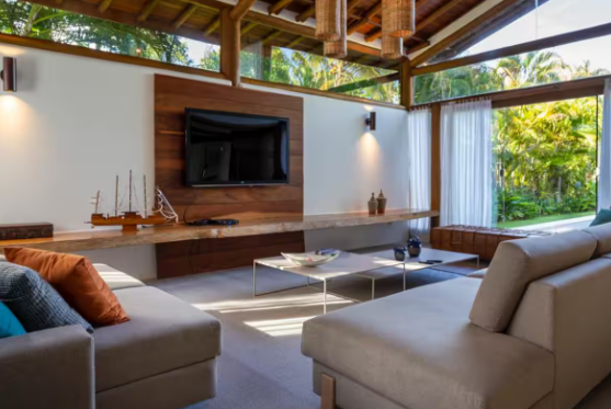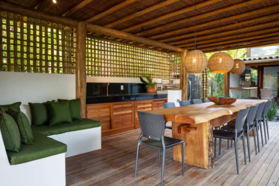 Ambiente Exclusivo: Essa casa oferece o equilíbrio perfeito entre sofisticação e natureza, com detalhes em madeira e design que harmonizam com o verde ao redor.